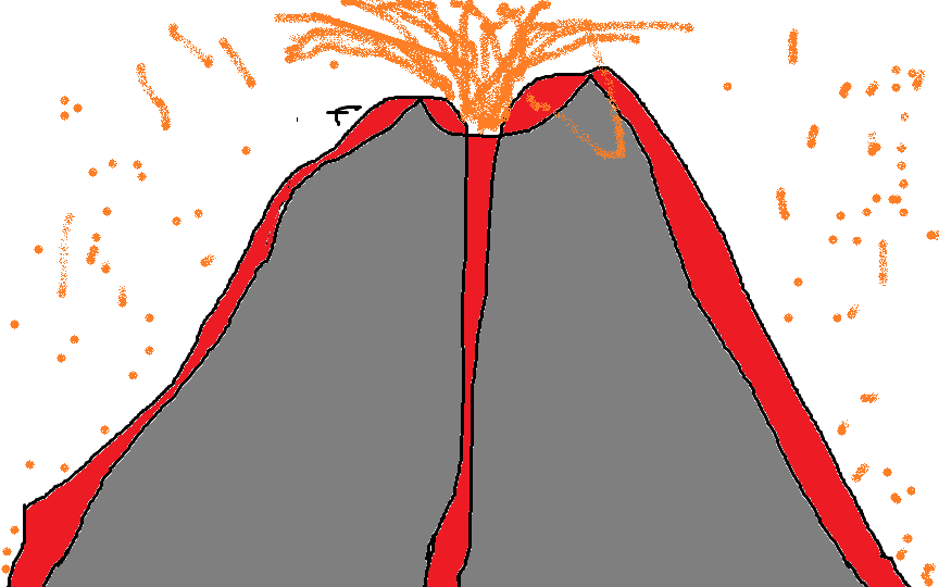 The volcano is erupting. It sounds like thunder. The lava is flowing like a river and it is zizzling hot.